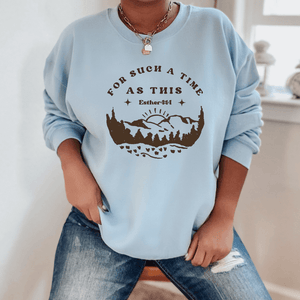 If there was ever a time to have this 'For Such A Time Sweatshirt', it would be for such a time as this.  This cool Christian sweatshirt with Esther 4:14 Bible verse is a comfortable reminder to stand firm in your faith, no matter what is happening in the world.   Christian apparel with encouraging messages of faith from God's word is an intentional way to proclaim your faith and share hope with others who are still seeking Jesus.