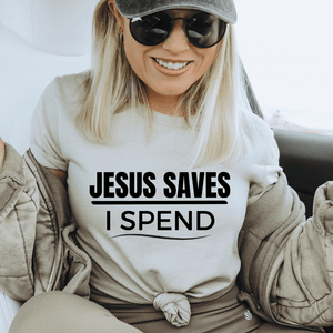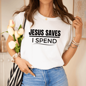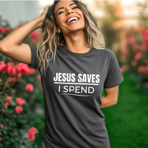 If this made you laugh out loud, you know this funny Jesus t-shirt is meant for you!   It's okay if you need an extra for your bestie too.  No judgment here.   Seriously, what's not to love about a funny Christian t-shirt that perfectly shares your love for Jesus and shopping all in one awesome Christian t-shirt?  Make the most of your shopping spree by sharing the Good News of Jesus with anyone you meet.