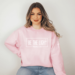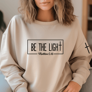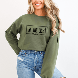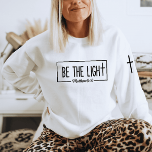 This Be the Light Sweatshirt with a minimalist design and Cross on the sleeve is sure to be your favorite new Christian sweatshirt with Bible Verse. You never know how simple it might be to brighten someone's day.  Wearing this trendy Christian sweatshirt with a bold faith statement to Be the Light is an easy way to share the Light of Jesus with anyone you encounter.  It's also super soft, comfortable, and warm.