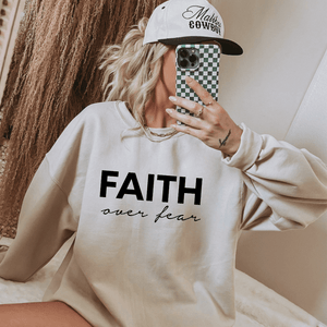 Planting seeds of faith can be as subtle and simple as wearing aesthetic Christian sweatshirt designs that catch everyone's attention.  In a world of uncertainty, this Faith Over Fear sweatshirt might be just the encouraging word someone you encounter needs to see.  Be bold to wear your faith and share your love for Jesus in everything you do.