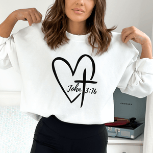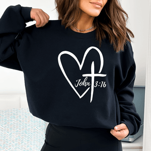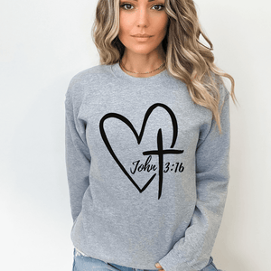 This cozy Gospel sweatshirt with John 3:16 Bible verse is the perfect way to share Jesus with anyone!  It's a cute Christian sweatshirt that's everything you could ask for - soft, stylish, and shares a bold message of faith.  Christian sweatshirts and hoodies are versatile to create your own Christian style from streetwear to comfy, casual.