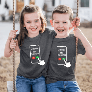 This Jesus Kids Shirt is sure to stand out in a crowd and  it's bound to become a favorite in any youngster's wardrobe. With a bold faith-based message to answer when Jesus is calling, this cute Christian kids tee is a great way for your kiddo to share their faith and heart for Jesus with friends anytime and anywhere.  Whether you're looking for back to school clothes or sending them off to summer vacation Bible camp,  this cool Jesus Kids shirt is the perfect choice!  It's light, soft, and comes with a unique faith-based design created by my niece Josie!  Made by kids for kids!