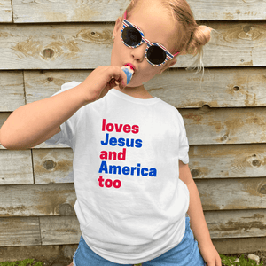 Loves Jesus and America Too kids tee! This is the tee that you've been looking for, and it's bound to become a favorite in any youngster's wardrobe. It's light, soft, and comes with a unique design that stands out from the crowd wherever you go!