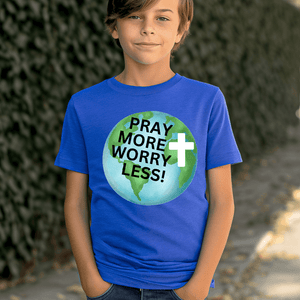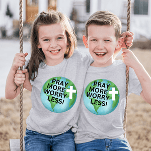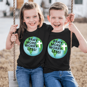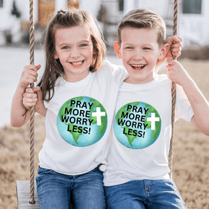This Pray More Kids Tee is the tee that you've been looking for, and it's bound to become a favorite in any youngster's wardrobe. Whether you're looking for back to school clothes or something new for kids summer camp, send them off with faith in this Pray More Worry Less kid shirt!