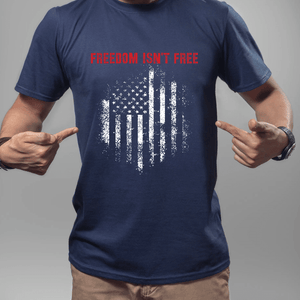 This Freedom Isn't Free T-shirt is a stylish way to make a statement and support all who have paid the ultimate price for our freedom. With an American flag design and military style, this patriotic shirt is soft, sturdy and sure to be your favorite new graphic tee!  It's made of 100% ring-spun cotton and is soft and comfy. The double stitching on the neckline and sleeves add more durability to what is sure to be a favorite!