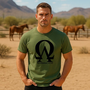 This Alpha and Omega shirt is a bold way to proclaim your faith in style! Its soft, sturdy, and structured style is the ultimate combination of quality and comfort. Plus, it shares a great faith-based message. With symbols representing Alpha and Omega and the Revelation 22:13 Bible verse, it's a stylish way to share who Jesus is—the Alpha and Omega!