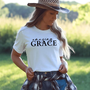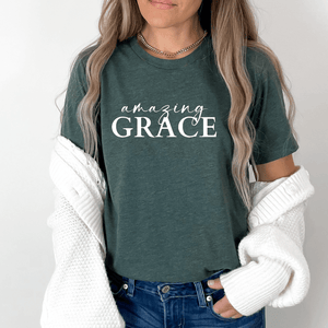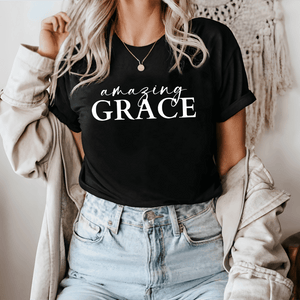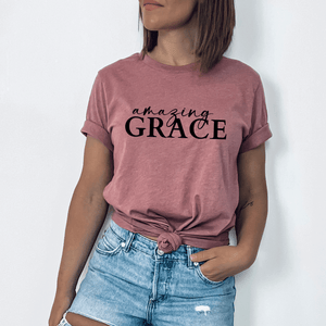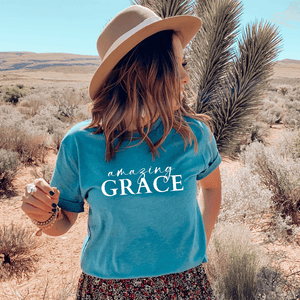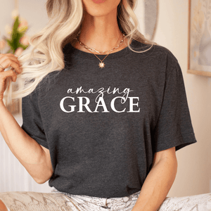 This Amazing Grace T-shirt is a great choice to show off your faith in a casual chic style!  Christian clothing with aesthetic designs and faith-based messages is an intentional way to plant seeds of faith with anyone, anywhere!