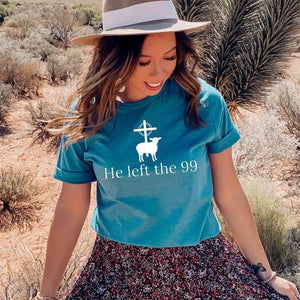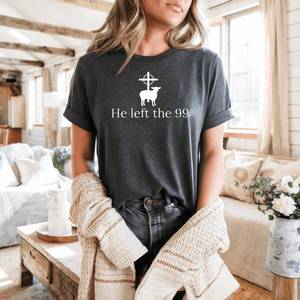 This He Left The 99 Shirt is the perfect t-shirt to turn heads and start conversations!  With a faith-based message inspired by the parable of the lost sheep, this awesome Christian graphic tee is the ideal top for so many occasions.