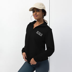 This Jesus is The Way Fleece Pullover is a classy Christian sweatshirt for men and women!  Embroidered with the verse from John 14:6 - Jesus is the way, the truth, the life, this 3/4 zip fleece pullover is versatile and stylish for many occasions.  Layer it over a t-shirt or polo to keep you warm and toasty on chilly days. It's perfect to wear everywhere from the gym, to work or a long flight home or Christian golf apparel.    With a relaxed fit and classic silhouette,  you can style it as Christian streetwear, for a business casual meeting, or for lounging around at home.  Best of all, it's an intentional way to share a bold message of faith and Jesus with anyone.