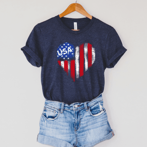 This USA Flag T-shirt is the ultimate patriotic t-shirt to show your love for America!  With an American flag heart design and soft, lightweight style, this cool patriotic t-shirt is perfect for your 4th of July celebration, summer vacation, and everything in between!